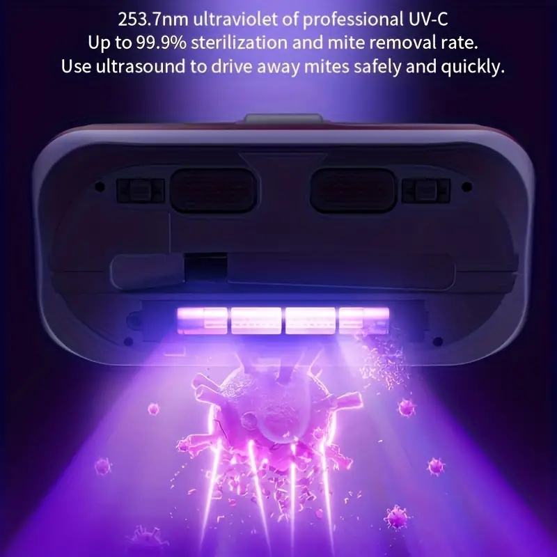Aspiratorul Antiacarieni 2 în 1 cu Tehnologie UV transformă igienizarea locuinței tale într-o sarcină simplă și eficientă, eliminând până la 99% din acarieni și bacterii. Indiferent dacă îl folosești pe saltele, perne sau canapele, dispozitivul nostru garantează o curățare profundă și protejează sănătatea ta și a familiei tale.