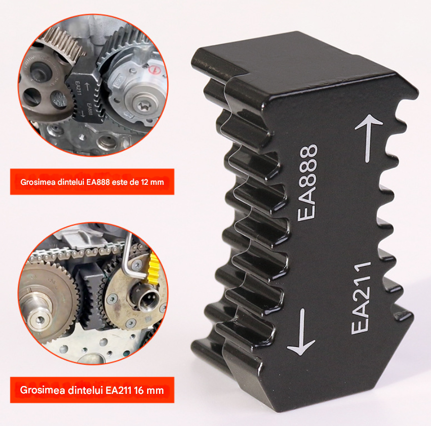Această unealtă special concepută este destinată fixării pinioanelor arborelui cu came și a curelei de distribuție pentru motoarele Volkswagen și Audi din seriile EA888 și EA211. Fabricată din oțel de înaltă rezistență, garantează alinierea perfectă a distribuției și simplifică semnificativ lucrările de întreținere sau reparație.