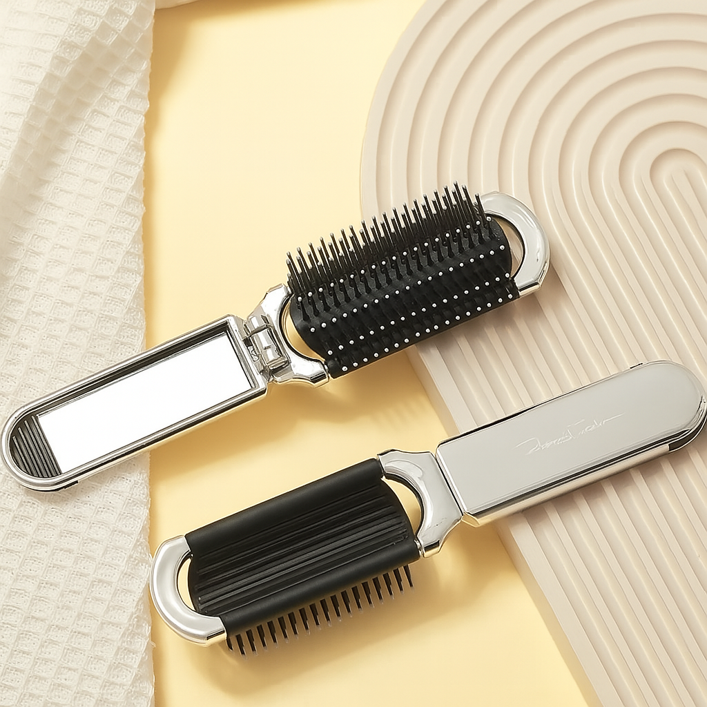 GlamFold™ este alegerea ideala pentru cei care doresc sa arate impecabil oriunde s-ar afla. Aceasta perie 2-in-1, cu design pliabil si oglinda ascunsa in maner, imbina eleganta cu utilitatea intr-un accesoriu compact si rafinat.