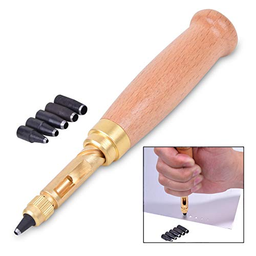- Include un mâner de lemn și 6 perforatoare de dimensiuni diferite, pentru a satisface diverse nevoi de perforare.