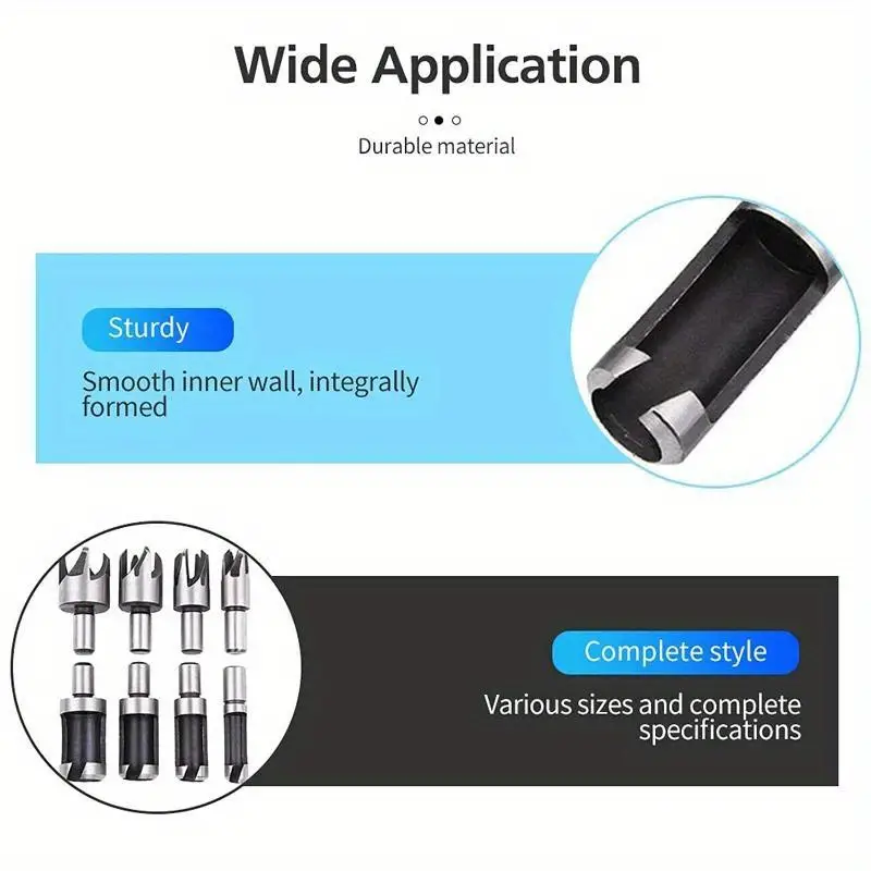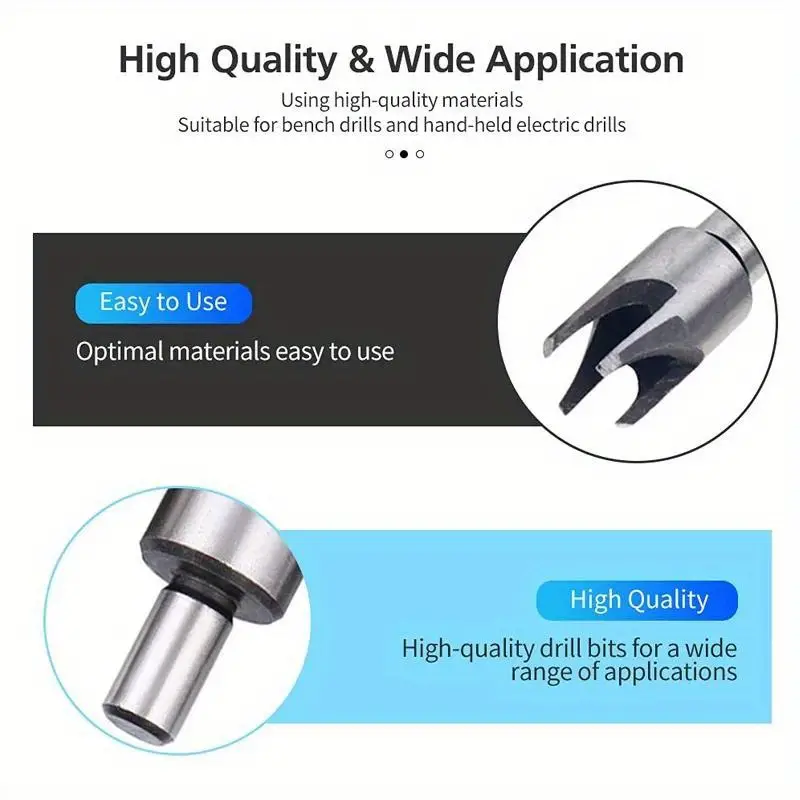 - Rezultate Profesionale: Cutterele standard și conice creează dibluri perfect ajustate pentru găuri adânci, ideale pentru finisaje estetice și robuste.